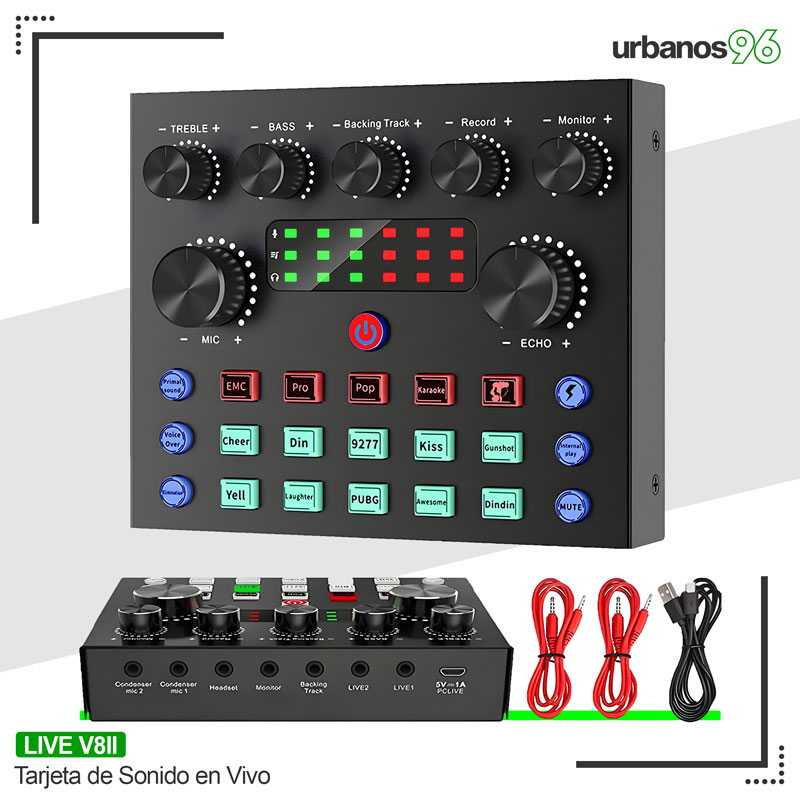 Estas buscando mejorar tus transmisiones en vivo, Ahora lo puedes hacer con la tarjeta de sonido ya que cuenta con 6 modos de sonido y 12 efectos de sonido, fácil de transportar según tus necesidades.